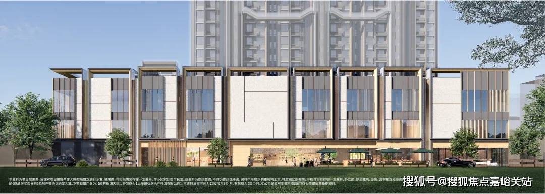 以海派建筑风格、塔冠造型,致敬城市经典。极致线条勾勒,金属铝板与大面积玻璃搭配,辅以香槟色与灰色系色彩, 彰显建筑立面的鎏金质感与美学。