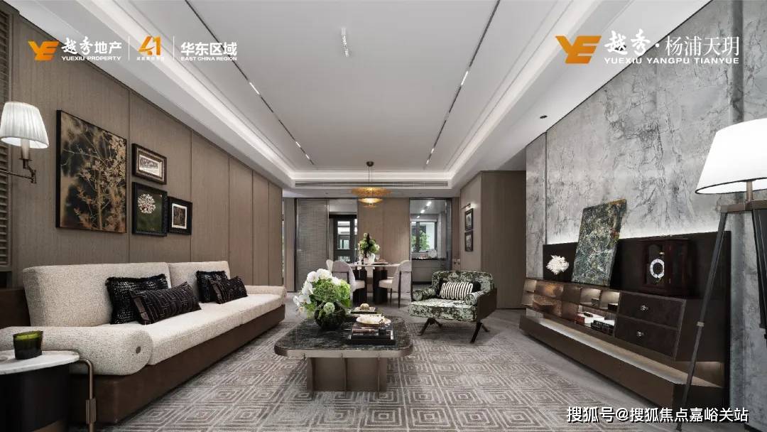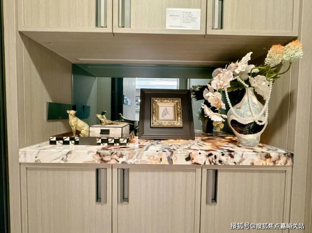 餐厅区域放置一个餐边柜,同样选用了雪山飞狐奢石做透光台面设计,餐边柜在收纳储物方面具有显著作用。越秀杨浦天玥售楼处电话: